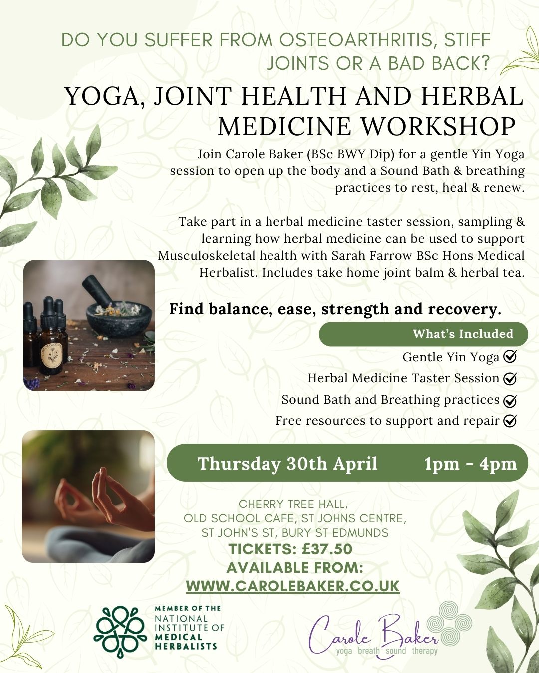 Workshops will either take place in the studio at Moat House Yoga or at The St John’s Centre in Bury St Edmunds (please check on Mind Body).