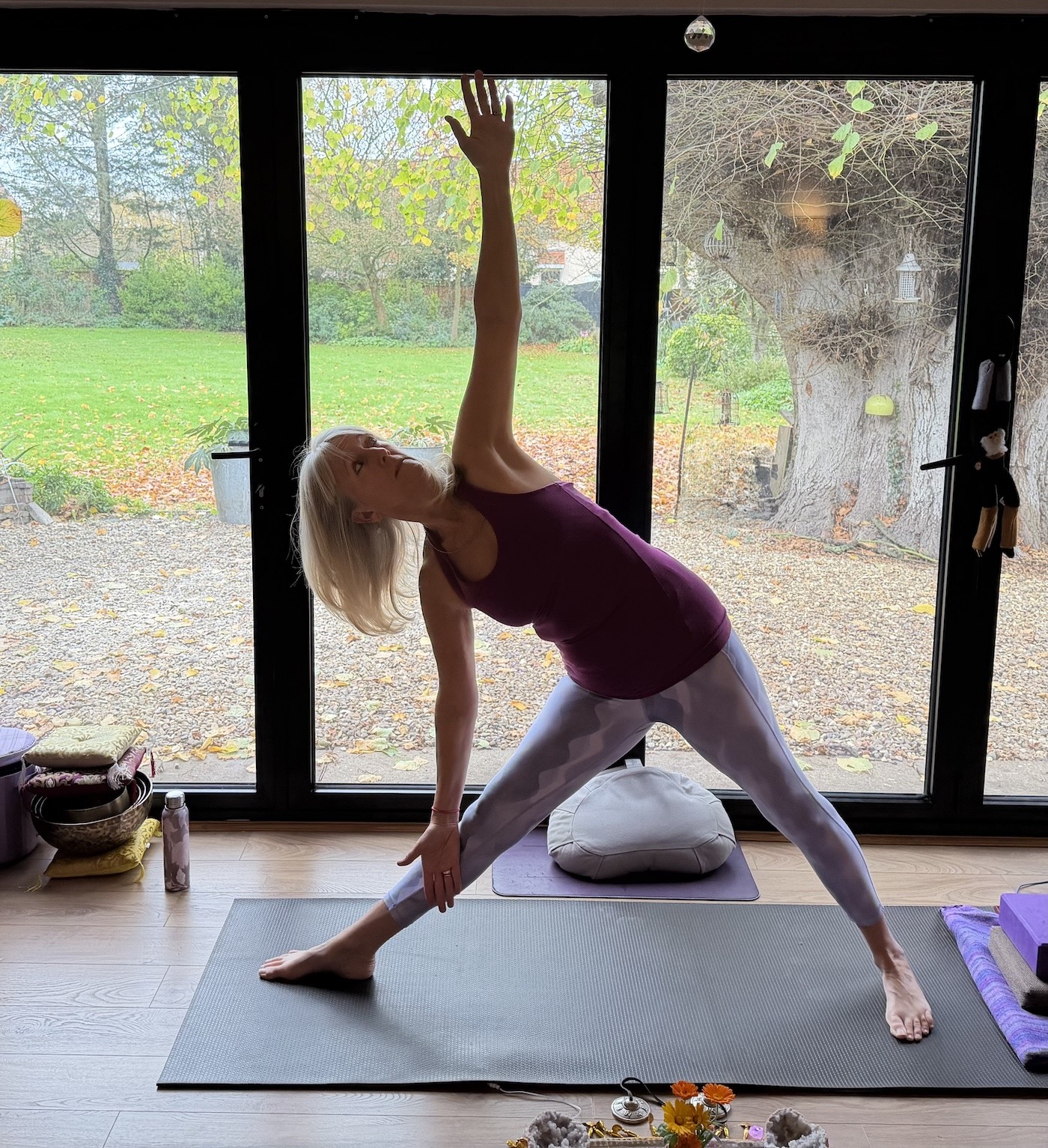 Small groups offering individual attention if desired. A relaxed and informal, friendly atmosphere. No taking ourselves too seriously! Wear loose comfy clothes in layers and bring a bottle of water. We have mats, bolsters, blocks, blankets and much more if needed.